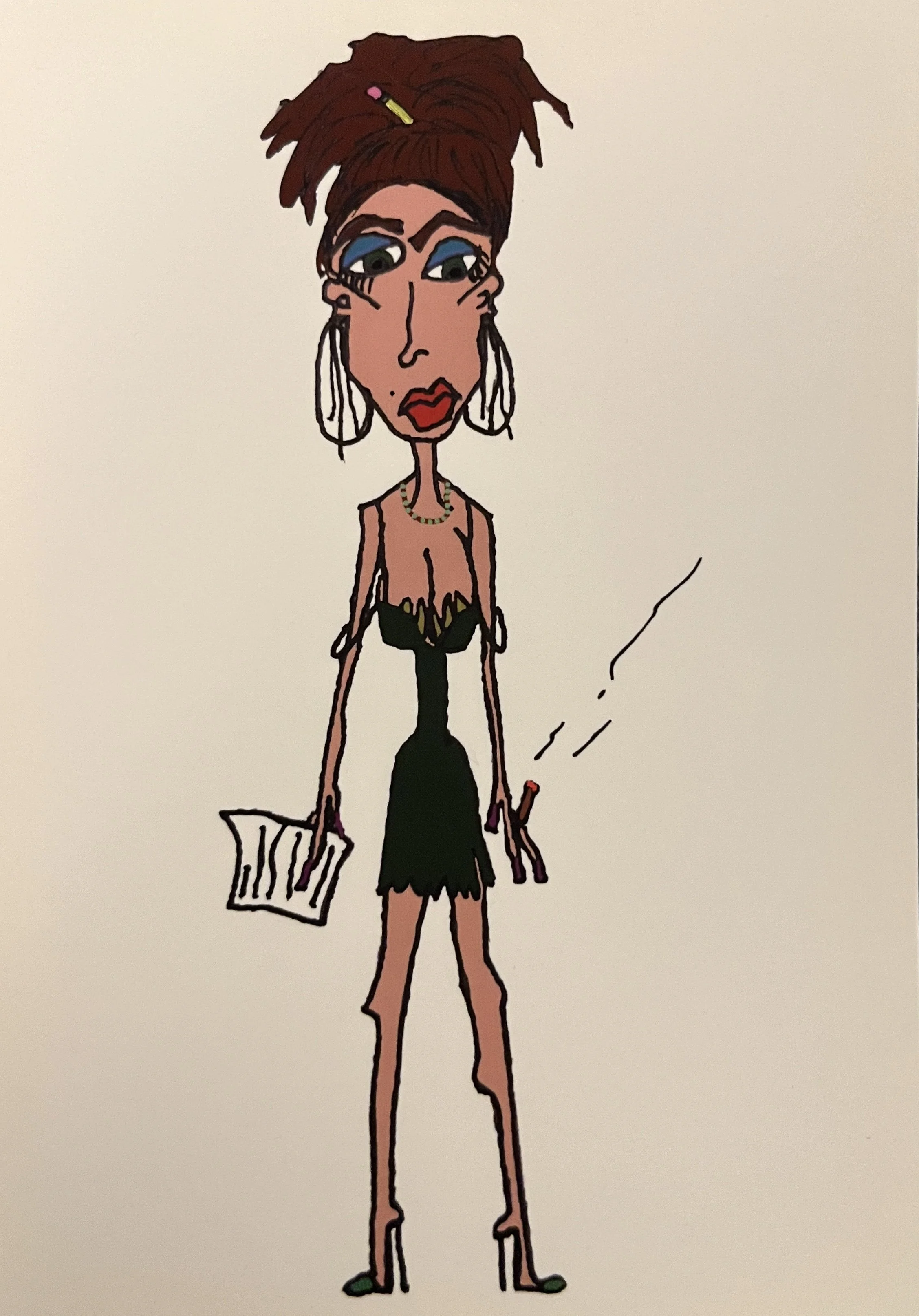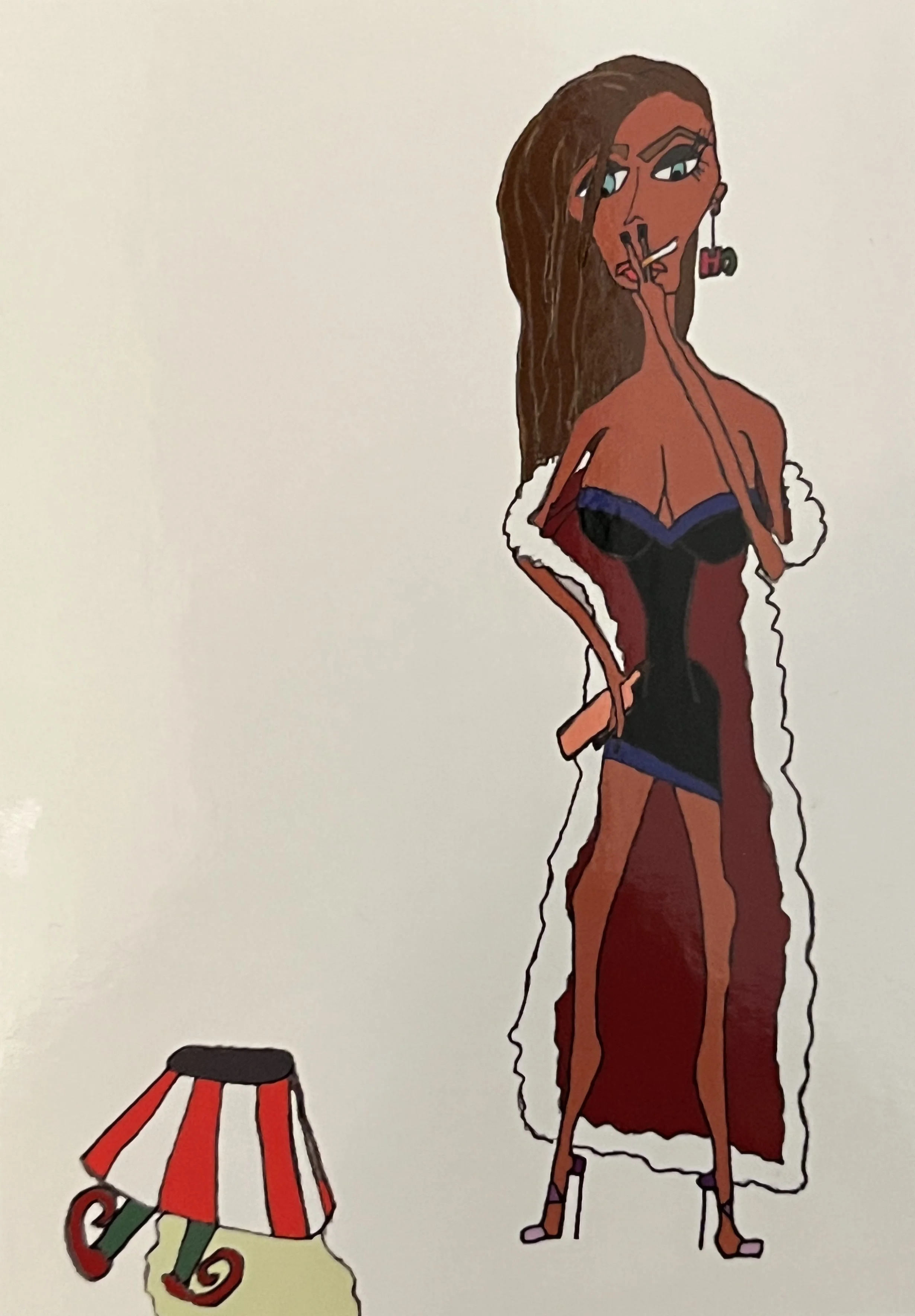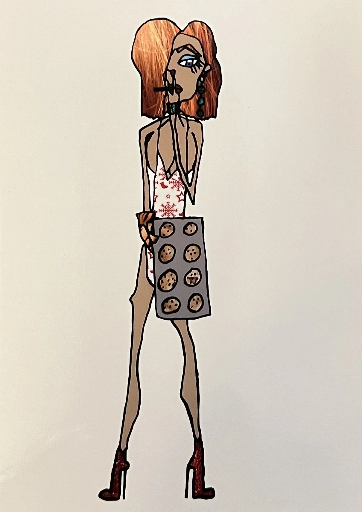 Miss sketchy snow gal is ready to hit the bars, to meet a sketchy snowman, have a romance and lay out under the stars.
